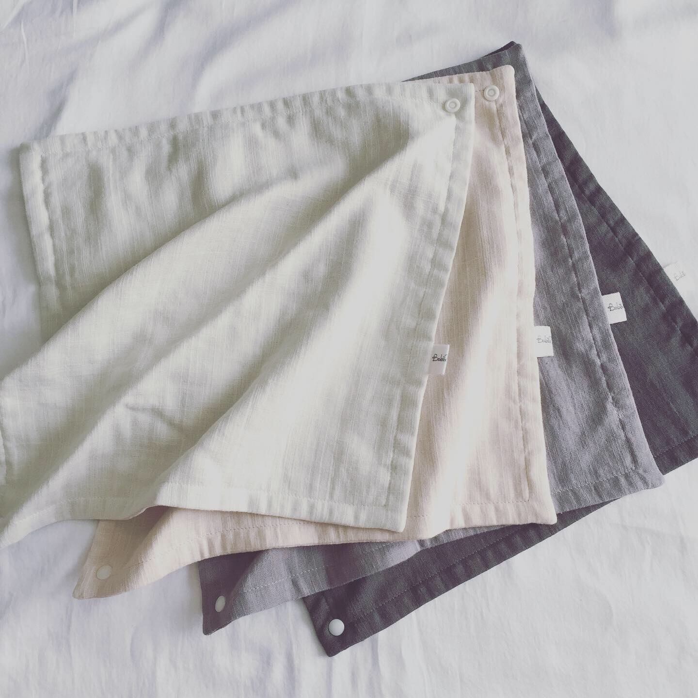 広げるとガーゼのハンカチにもなるバンダナスタイ。ダブルガーゼの2枚使いで肌触りも優しく吸収力も抜群なのでよだれの多い赤ちゃんにもおすすめです。シンプルながらもお洋服のポイントとしてお使いいただけるかと思います。